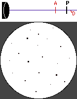 Point "P" represents the distance the dust particles are away from the camera lens, and "A" again represents the camera lens's inverted focal point (the point that an object must be past to be in-focus). This diagram shows how dust particles become out of focus as they get closer to the camera lens.