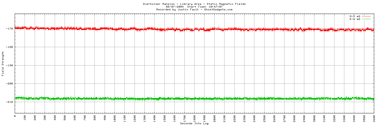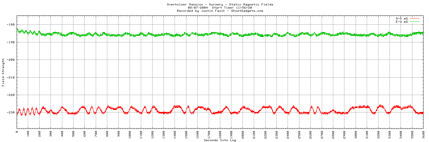 Three investigations of the Overholser Mansion had been held preciously by OPRA (Oklahoma Paranormal Research Alliance), which I attended two of, both with the Arcadia computer monitoring system. The first investigation (April, 2003) yielded mixed data, and little environmental correlation on Arcadia, but the second investigation (August, 2003) yielded some very interesting data. Variances seemed to be high in the static magnetic fields (1st floor), and a TriField Natural meter (on magnetic), set up in the Library, showed a large (10.5 mT) temporal field change. Reports of being touched were also noted by several team members, as well as a door on the 3rd floor opening by itself. I suspect to possibly find heavy local EM variances in the areas of interest (where uneasiness, anticipation, fear, and possibly RSPK activity has been reported), as well as possible infrasonic sound resonant frequencies, which can cause feelings of uneasiness and possibly fear. EM data (AC and static magnetic) will be logged continuously in several areas of interest, while electric fields and sound resonance data is being calculated for other areas in the mansion.